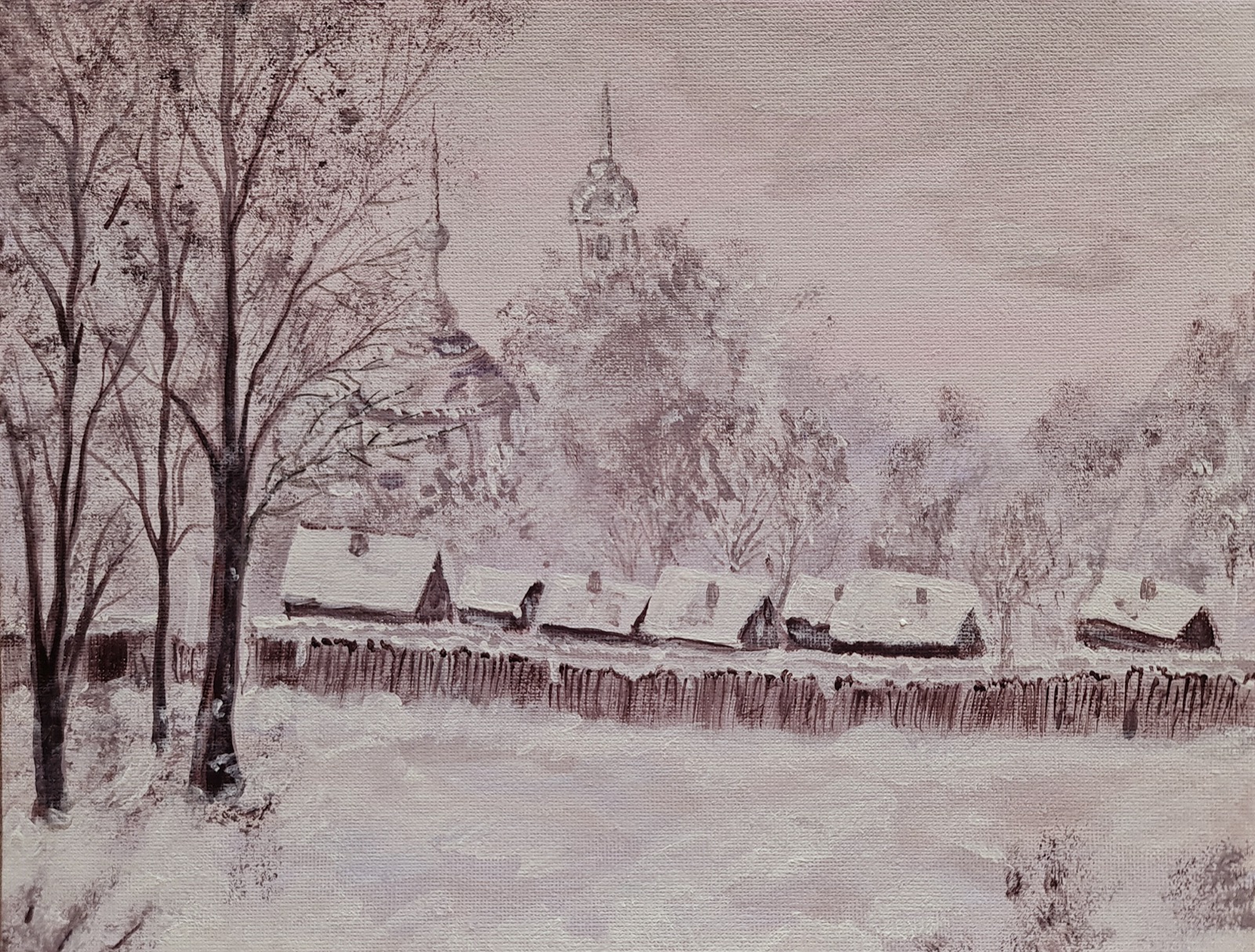 Acrylic paint • Hand-painted on canvas board • Without frame and hanging system • Dimensions 24x30cm